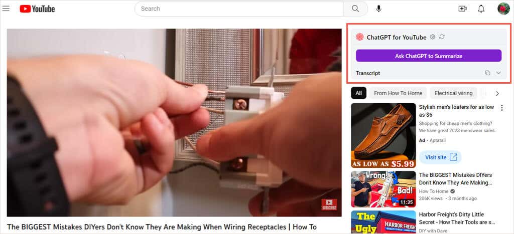 When you arrive on YouTube and choose a video, you’ll see ChatGPT for YouTube on the top right of the page. Simply select Ask ChatGPT to Summarize, and you’ll see it comply using the prompt you added.
