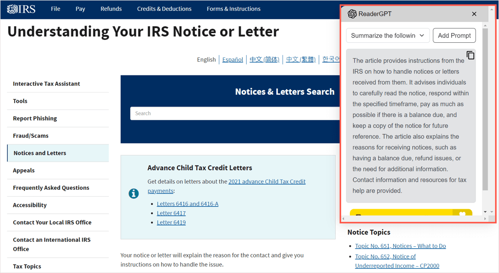 1. Summarize a Web Page: ReaderGPT