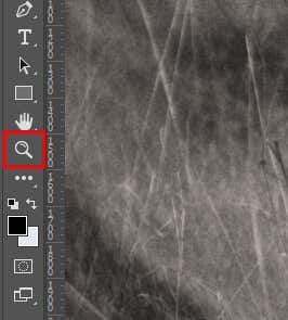 Using the zoom tool is the default way of zooming in and out in Adobe Photoshop. You’ll just have to use the magnifying glass icon near the bottom of the toolbox on the left side of the Photoshop screen.
