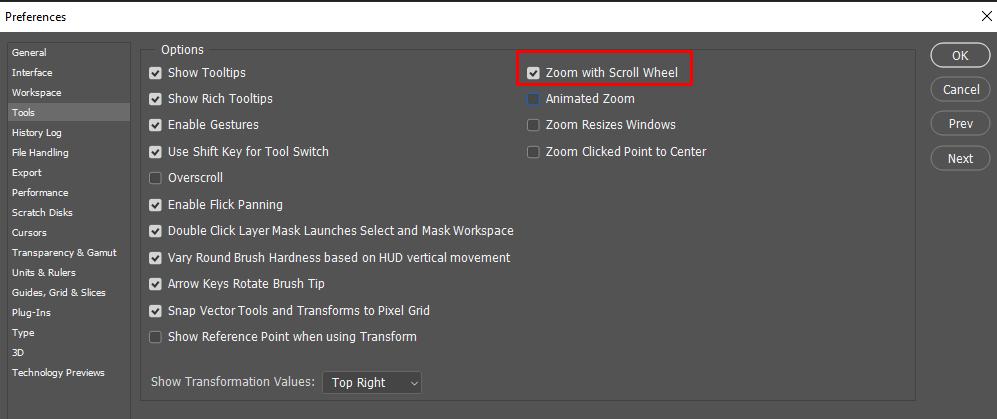 - Tick the checkbox next to Zoom With Scroll Wheel.