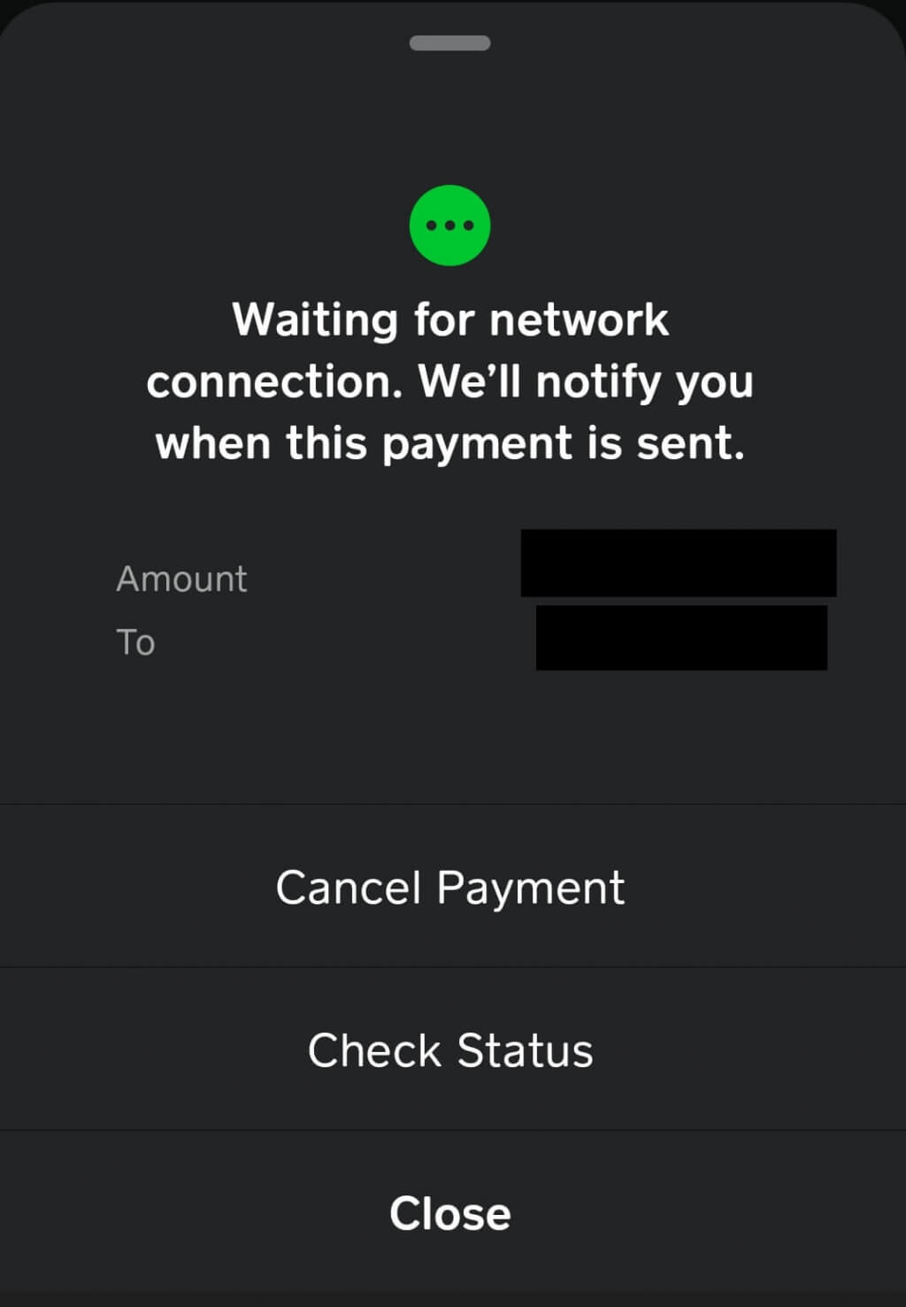You need a stable internet connection to use Cash App, so if you’ve tried to send a payment — or are waiting to receive a payment when connectivity is poor, this could result in the payment showing as pending. We’d recommend waiting until you’re in an area with better connectivity, such as high ground or a major city, before checking to see if your Cash App payment has been received.