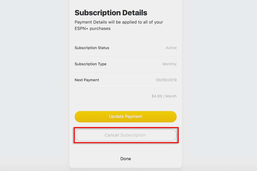 The easiest way to cancel your ESPN Plus subscription is via the ESPN website: