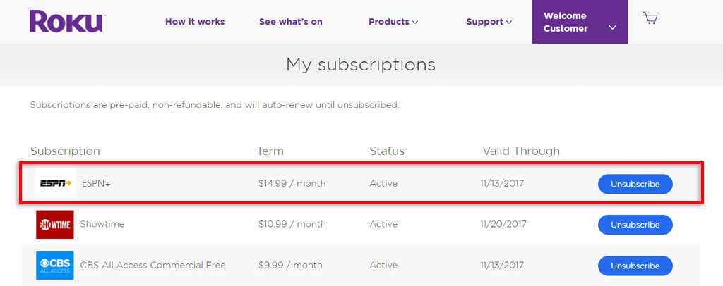 - Find ESPN Plus and select unsubscribe.
