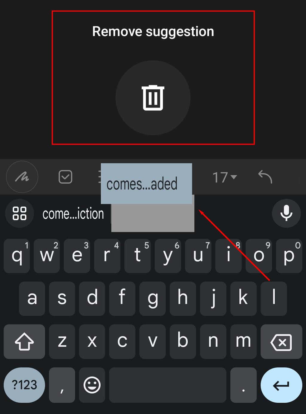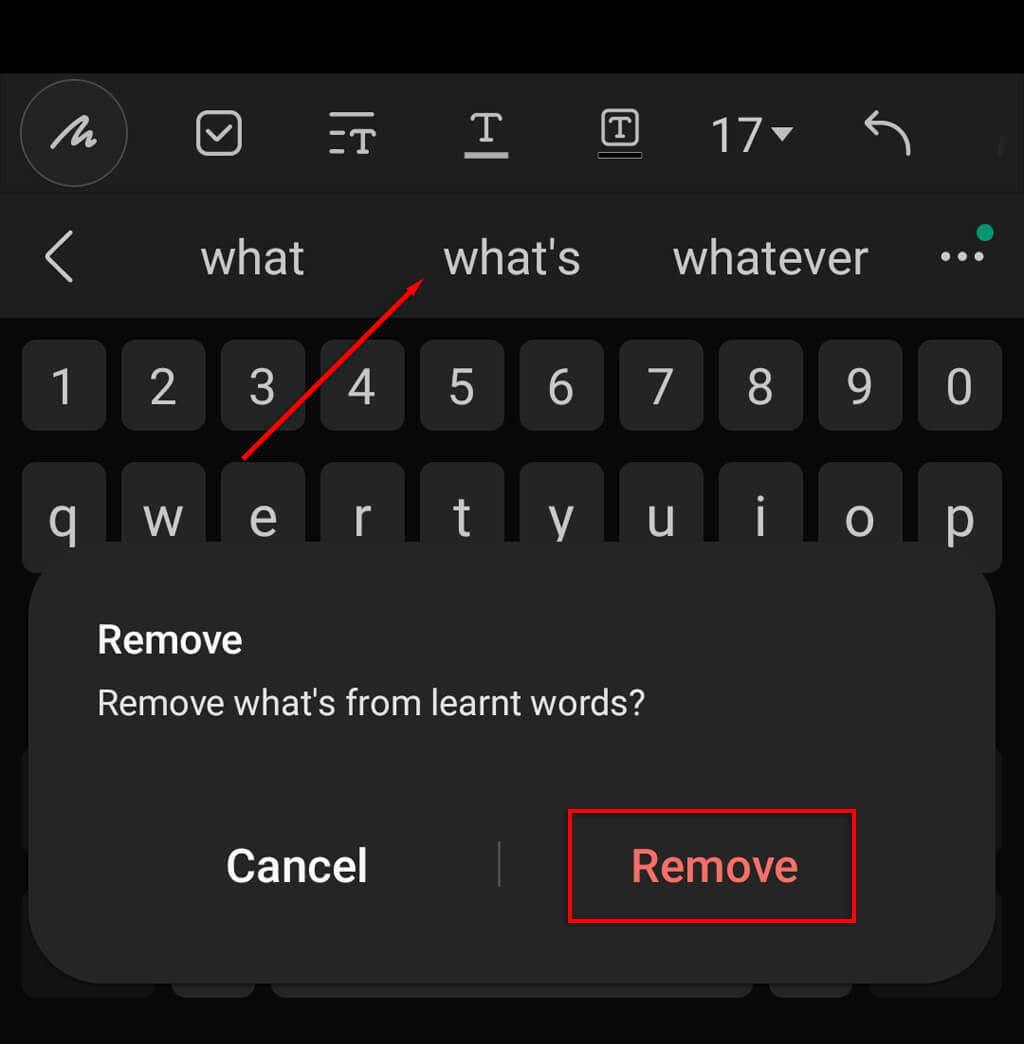 - When the word suggestion appears, long-press the word and select Remove from the dialog box.