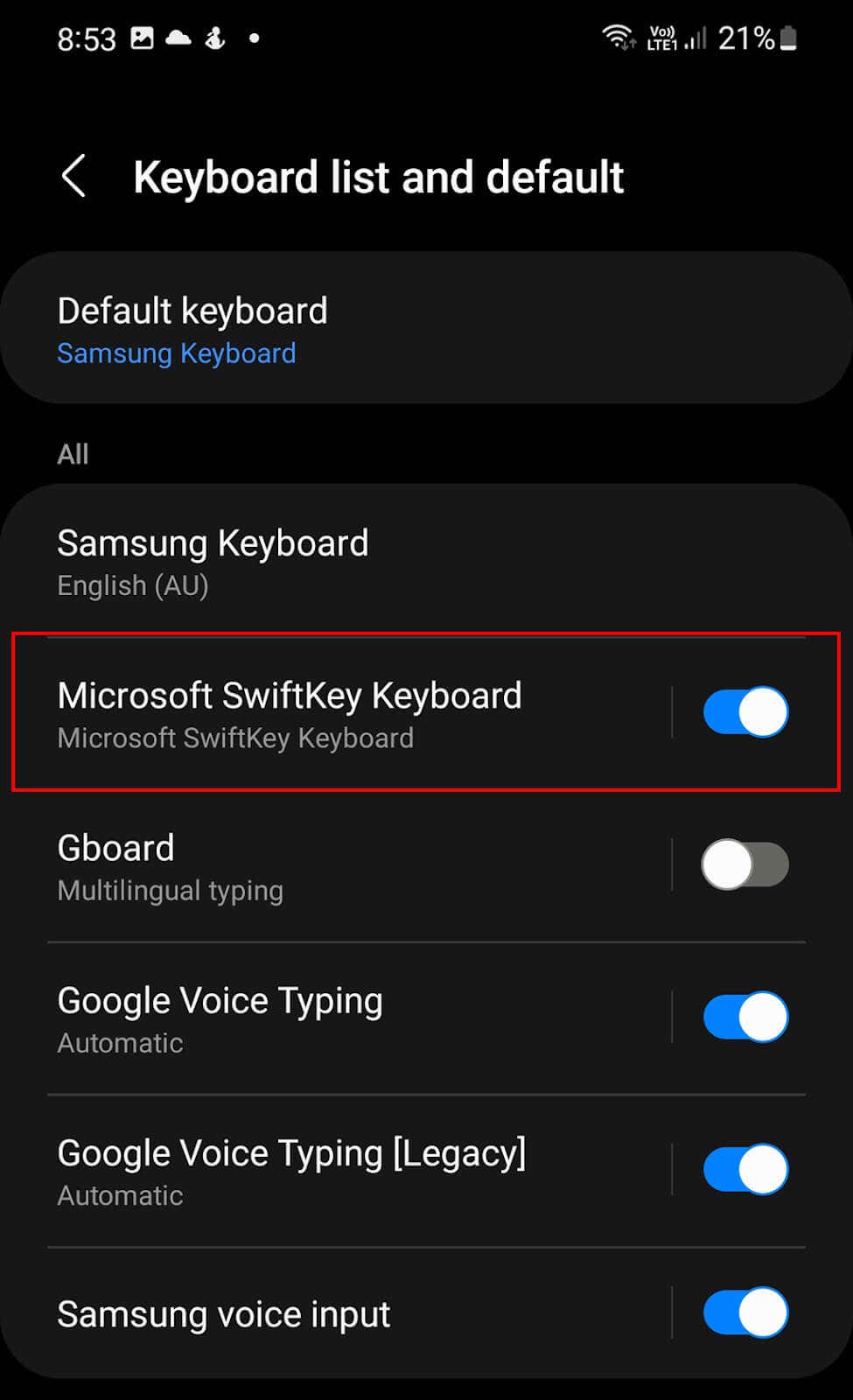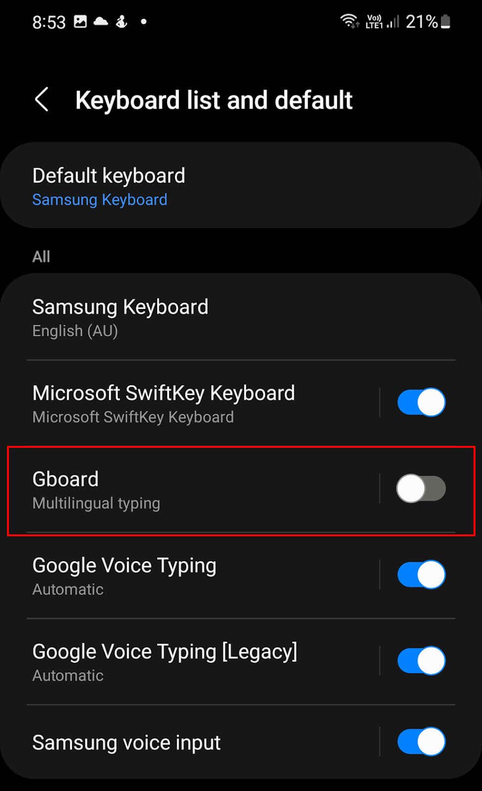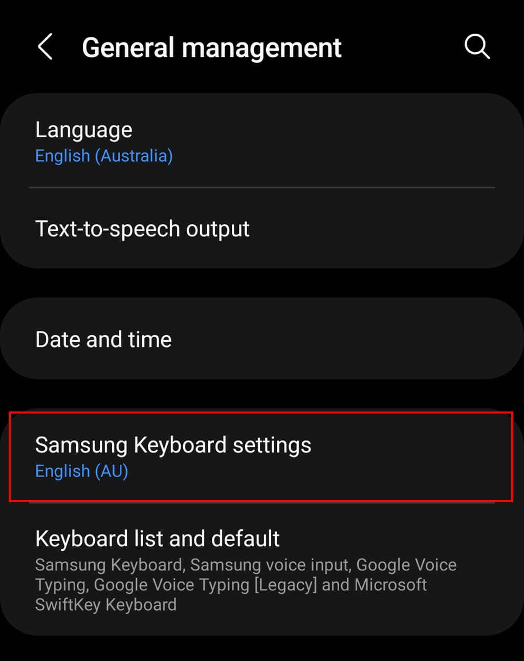 - Tap the keyboard you use, whether it’s Samsung Keyboard, Gboard, or Microsoft SwiftKey.