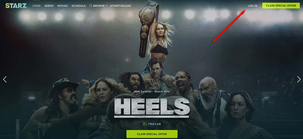 - Log in to the STARZ website ().