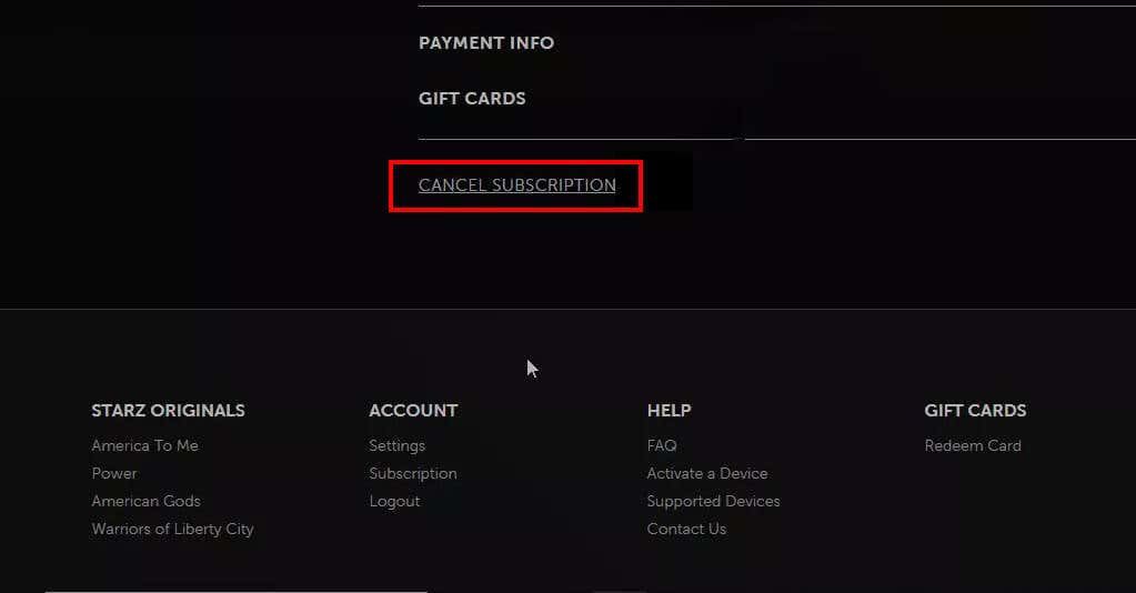 Here are all of the different ways to cancel your STARZ subscription: