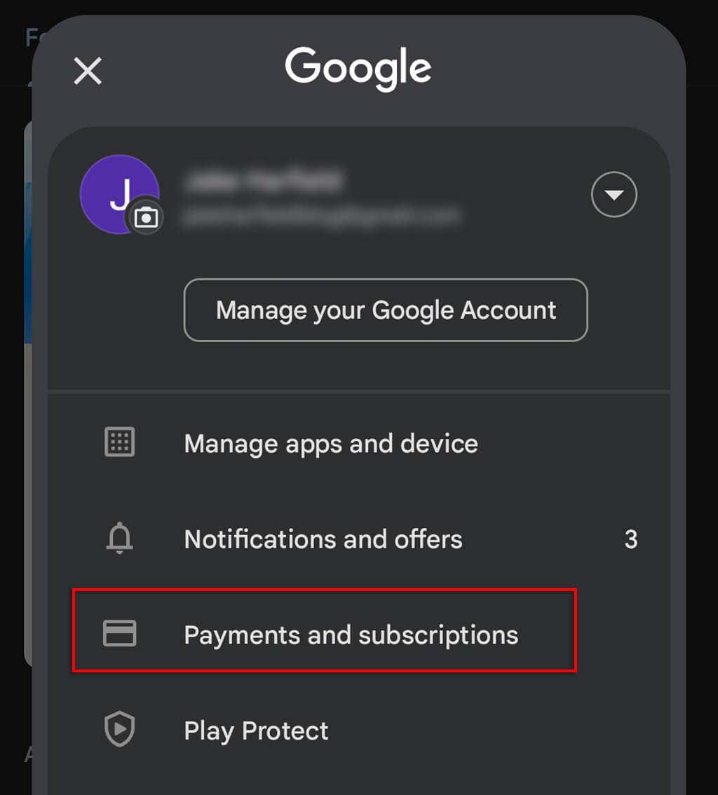 - Open the Google Play Store and select your account icon.