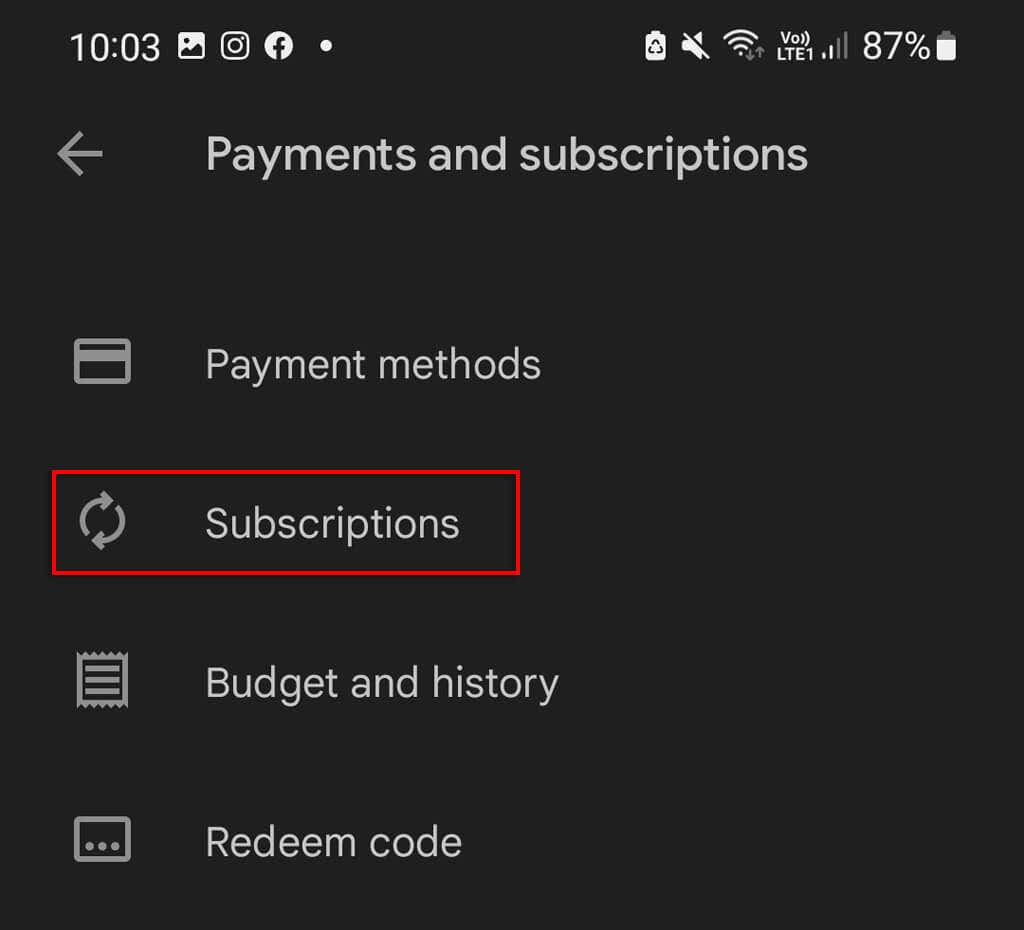 - Select Payment and Subscriptions.