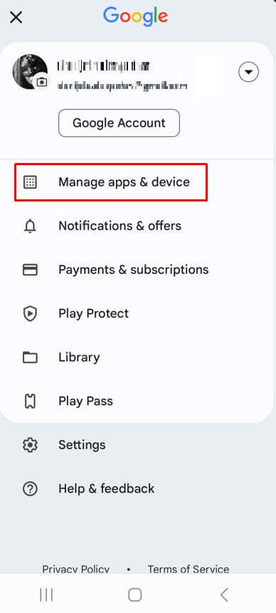 - Tap on your profile picture and select Manage Apps & Device.
