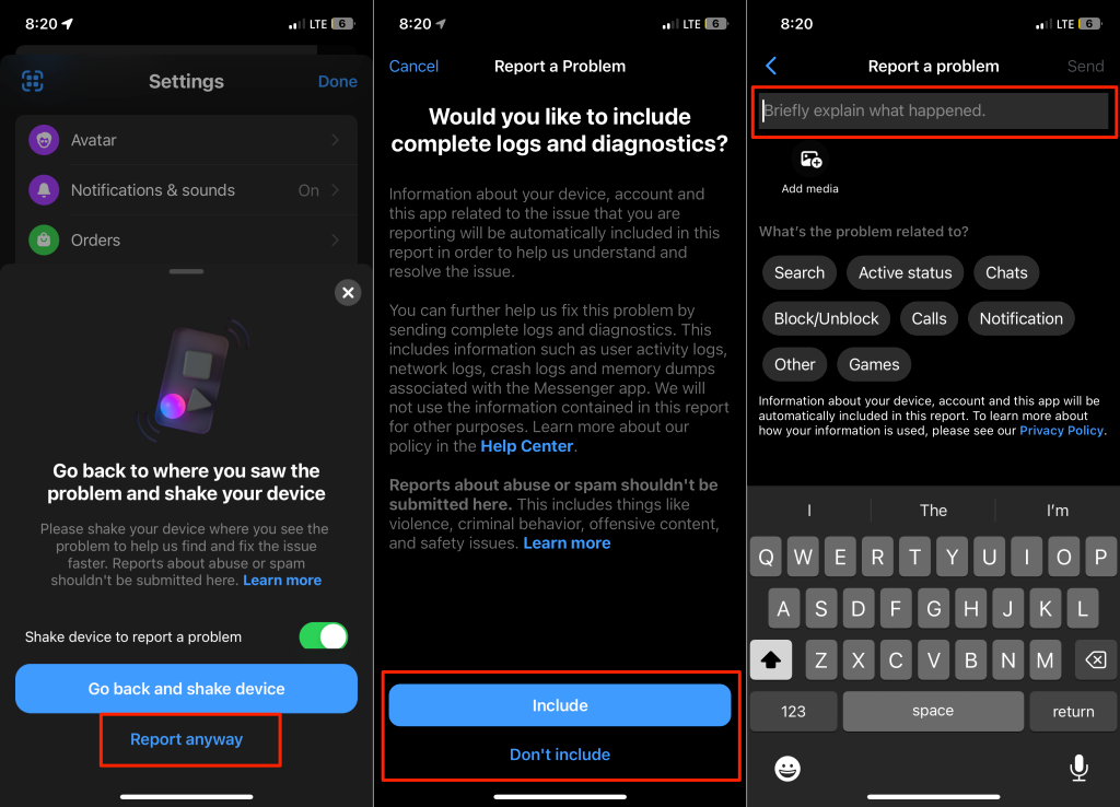 - Tap Report anyway and select Include to add information about your smartphone and account to the report. Choose Don’t Include to leave out this information.