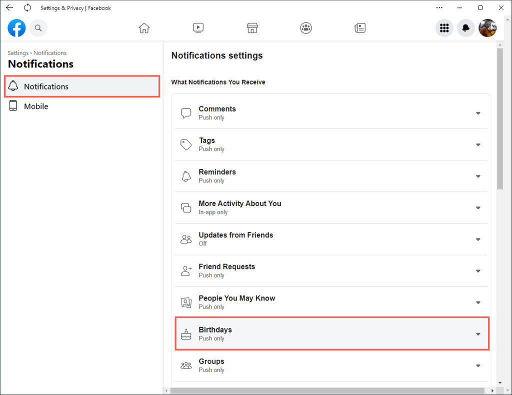 Adjusting your birthday notifications on the Facebook website might be a more convenient option for you. If so, it takes only a few steps.