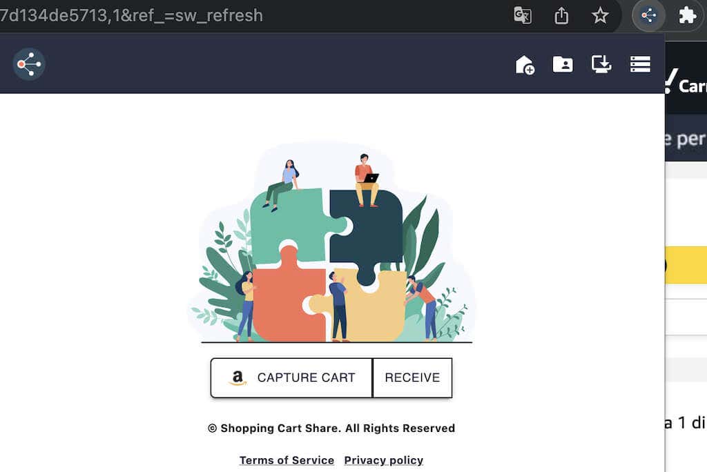- In Chrome, select the puzzle icon to the right from the address bar. Then select the Shopping Cart Share extension.
