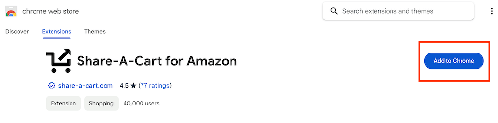 - Go to the Chrome Web Store and search for the Shopping Cart Share Extension.