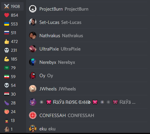 - Select Reactions, and Discord will display all the names who reacted with a specific emoji. You can select different emoticons on a sidebar to see the people who used them to react to your message.
