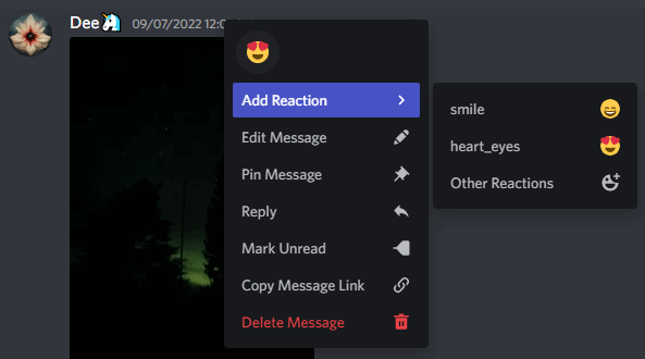 The alternative way of reacting to a message is to right-click on it and select Add Reaction from the offered options. You’ll be able to choose from the few offered emojis (most recently used) or go to Other Reactions to see the full selection.