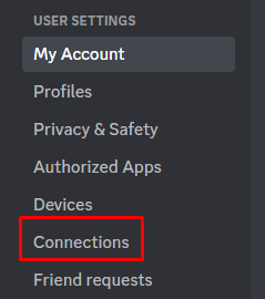 - Choose the Connections option under the User Settings section.