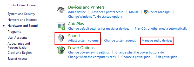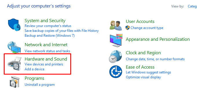 - Open the Control Panel and go to Hardware and Sound.
