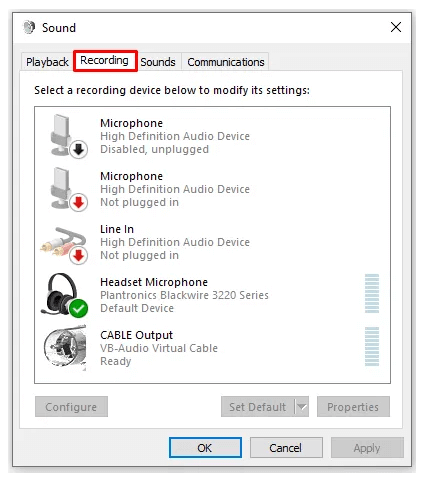- Go to the Recording tab