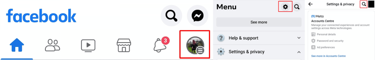 - At the upper right corner of your screen, beneath the Messenger icon, click the icon that shows your profile pic with three horizontal lines.