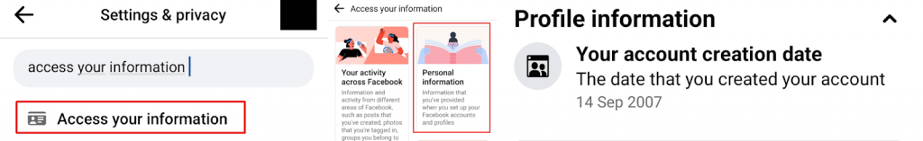 - Under Profile Information, you should see a heading which says “Your Account Creation Date.” The date you joined Facebook should be underneath this.