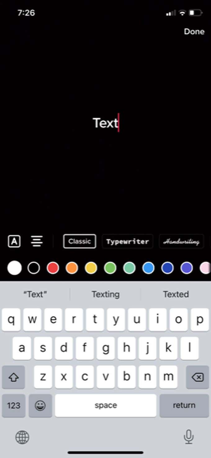 - Tap outside of the text or select Done to add it to your video. Then, you can move it around to place it.