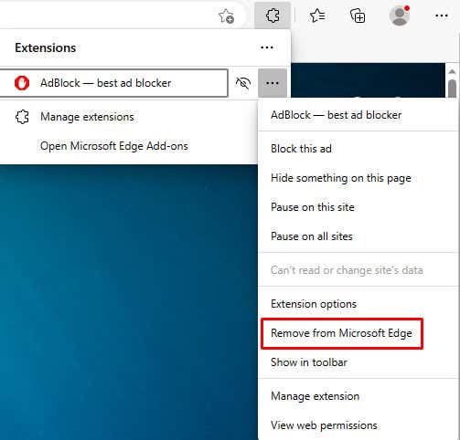 Clear Browser Extensions on Microsoft Edge