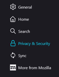 - On the next page select Privacy & Security from the left panel.