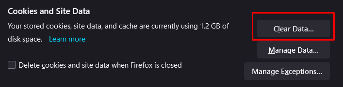 Clear Data on Mozilla Firefox