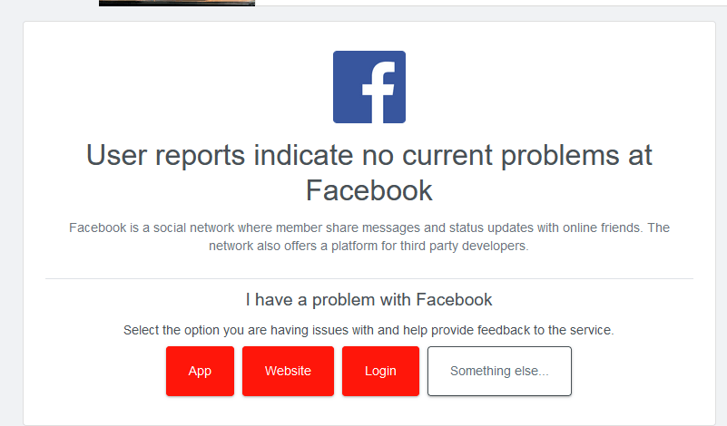- The next page will display the status of the Facebook server.