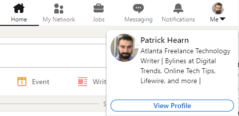 - Select the Me icon in the top-right corner on the LinkedIn homepage.