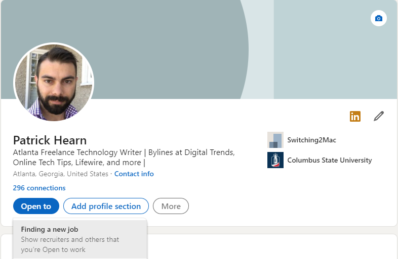 - Select Open to > Finding a new job.