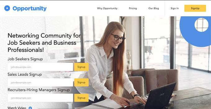 Opportunity calls itself a professional matchmaking site. Like other networking sites, Opportunity offers both a free option and a paid version called MyOpportunity PRO for $29 per month. Opportunity comes with some interesting features like the ability to have your messages proofread before you send them off, automatic follow up messages, and more.