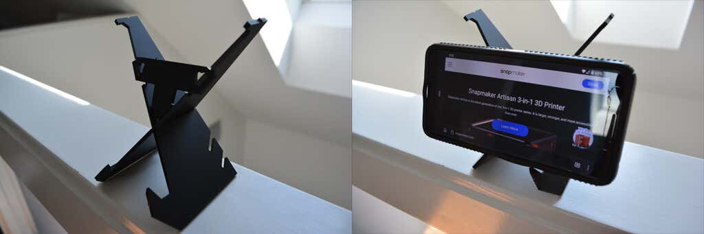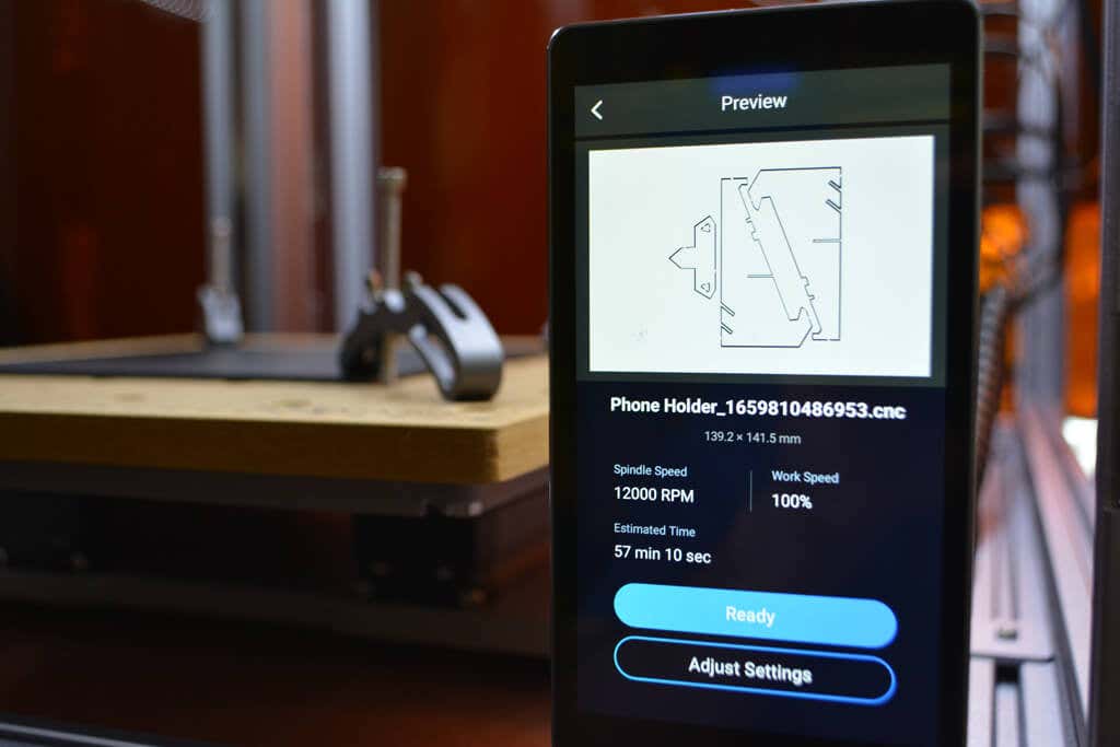 It seemed crazy to be able to use CNC machining to cut a piece of acrylic with such precision in our living room, but the Snapmaker makes it look easy. Using the Luben software, we prepared a sample file for a cell phone stand.