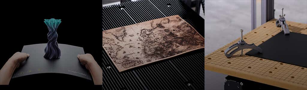 Since each module has an associated specialized bed, when you switch between modules, you also have to change the bed. Swapping them out takes some time. Switching from one module to another while the Snapmaker is inside the enclosure can be tricky because the screws fit through the back of the module heads, and it can be difficult to see what you’re doing. The bed sizes for each module are generous, allowing for a build volume that should accommodate all your projects.